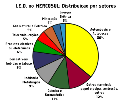 Gráfico da distribuição por setores do mercado do Mercosul