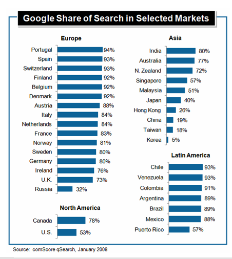 Gráfico mostrando o percentual da população que utiliza o google para pesquisa